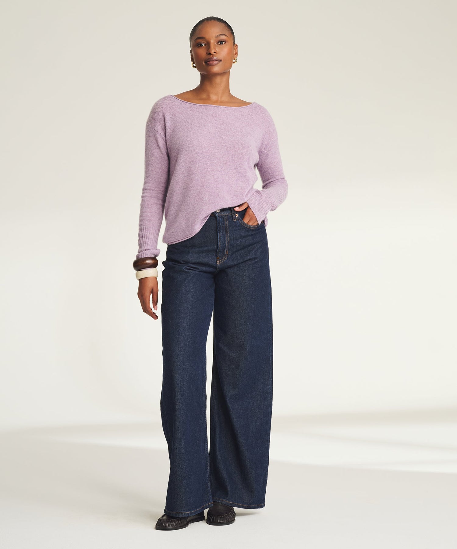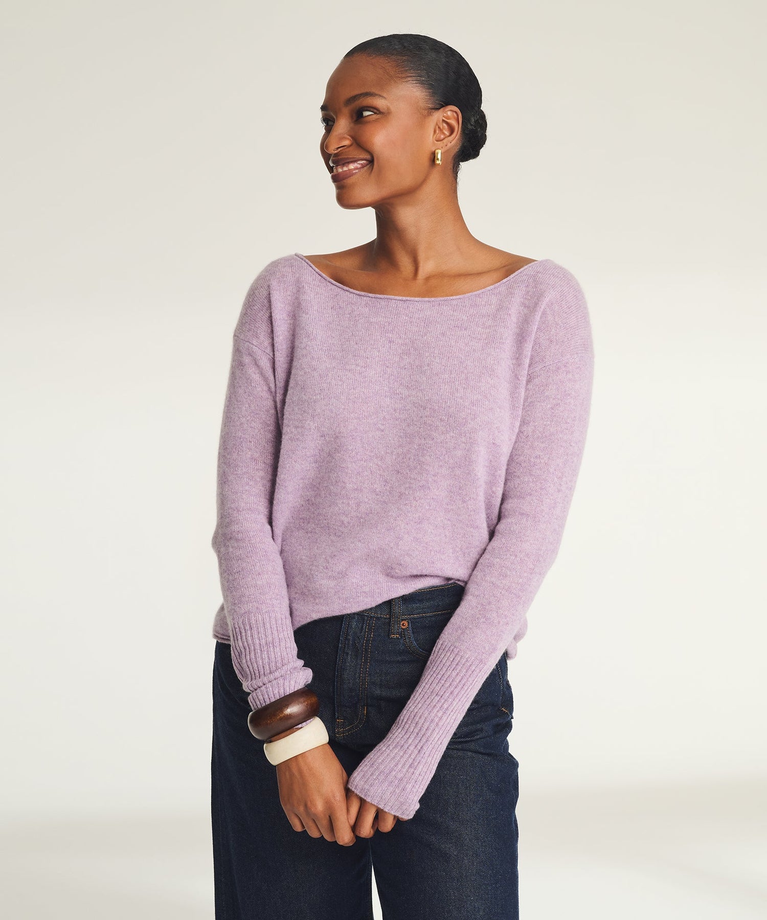 The Lightweight Cashmere Boatneck Sweater is a soft wardrobe staple with a relaxed classic fit and classic length. It features a wide boat neckline with a subtle rollneck finish, drop shoulders, and ribbed details. Crafted from 100% cashmere in a light, layerable, and breathable weight.
