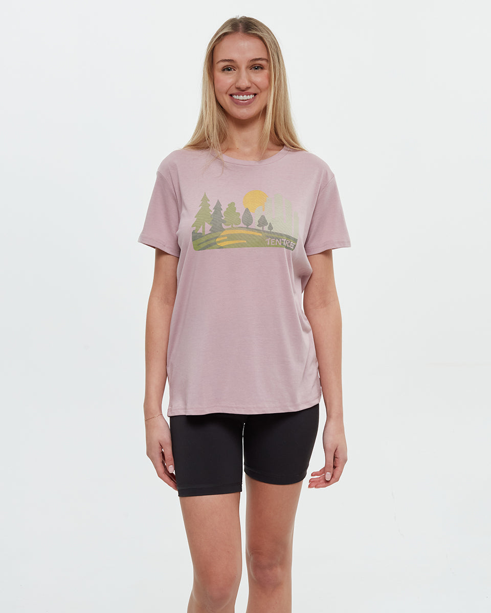 This tee does more than look good. It does good, too, being made from recycled and organic materials and contributing to tree-planting initiatives in urban areas. for graphic: We believe trees belong in all environments — including urban areas. This collection plants trees in cities with limited tree coverage, helping to cool them down, improve air quality, and boost peoples’ well-being.