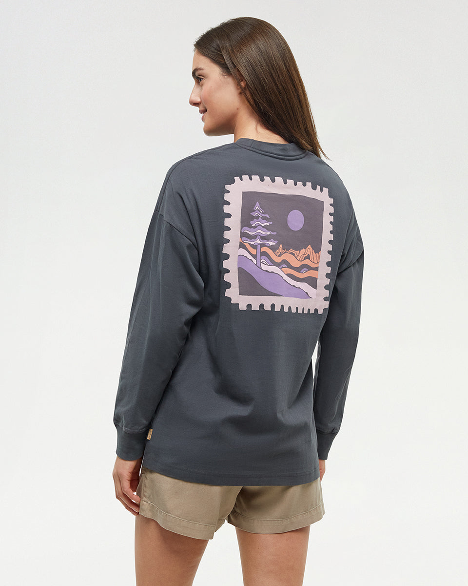 For lazy days at home or staying comfortable while out in the wild, an oversized longsleeve is the go-to for both. Plus, this one does good for the planet. For graphic: These nature-inspired graphics were created by artist Brooklyn Bell. Based in the Pacific Northwest, her designs are influenced by the scenic landscapes of the place she calls home. With the sale of this style trees will be planted in The Emerald Edge, whose forests sequester more than 300 million tons of carbon every year, equal to the annual energy use of nearly 58 million homes