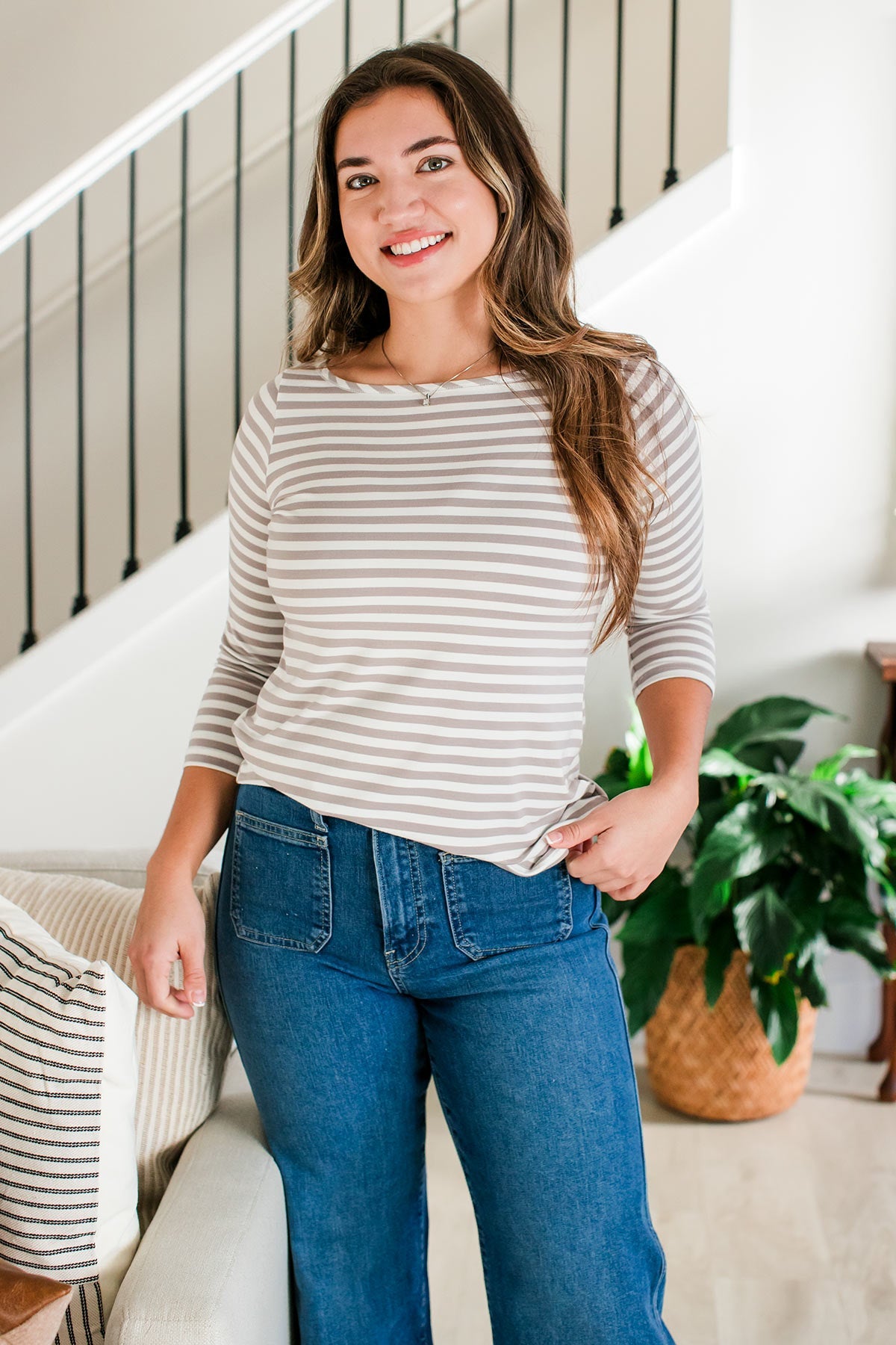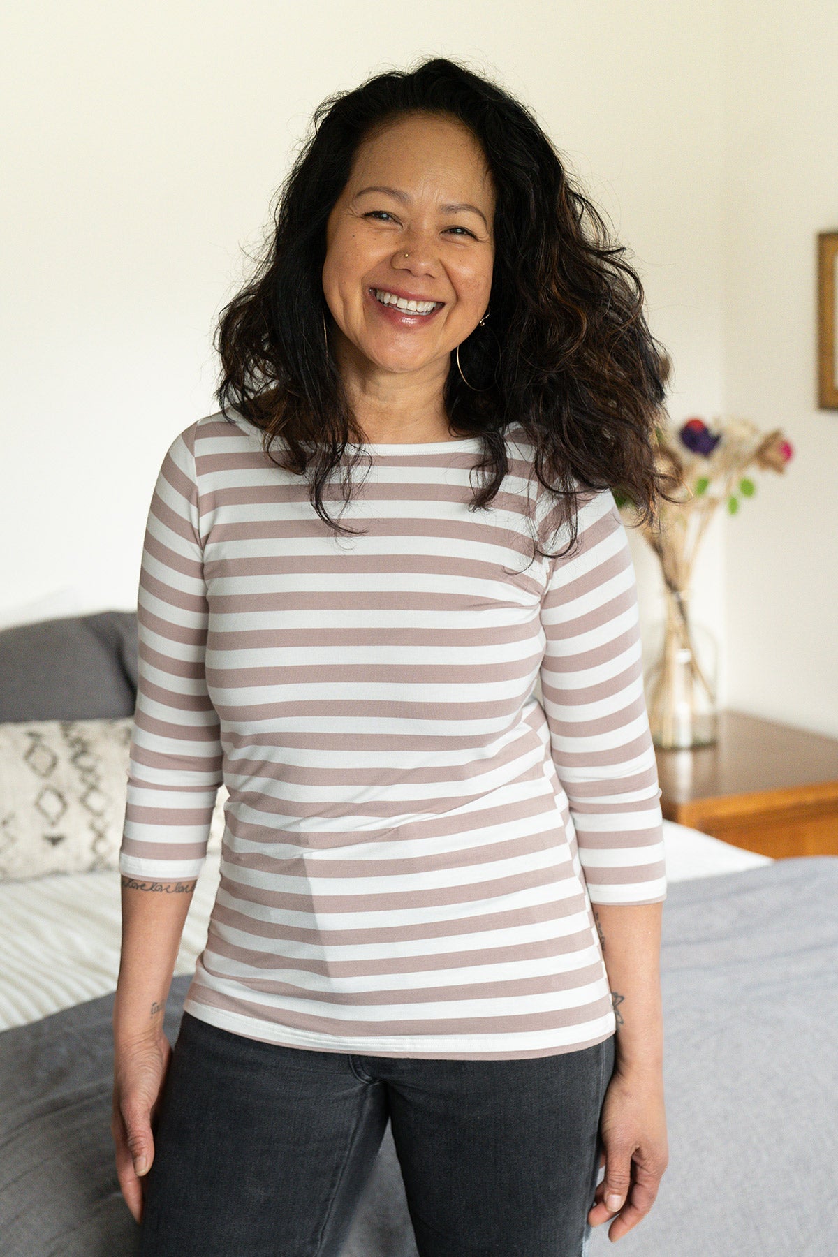 Our best-selling top for 17 years—loved for a reason. Now reimagined in Limited Edition wide stripes: timeless Navy and soft Fawn. These won’t last long—once they’re gone, they’re gone.