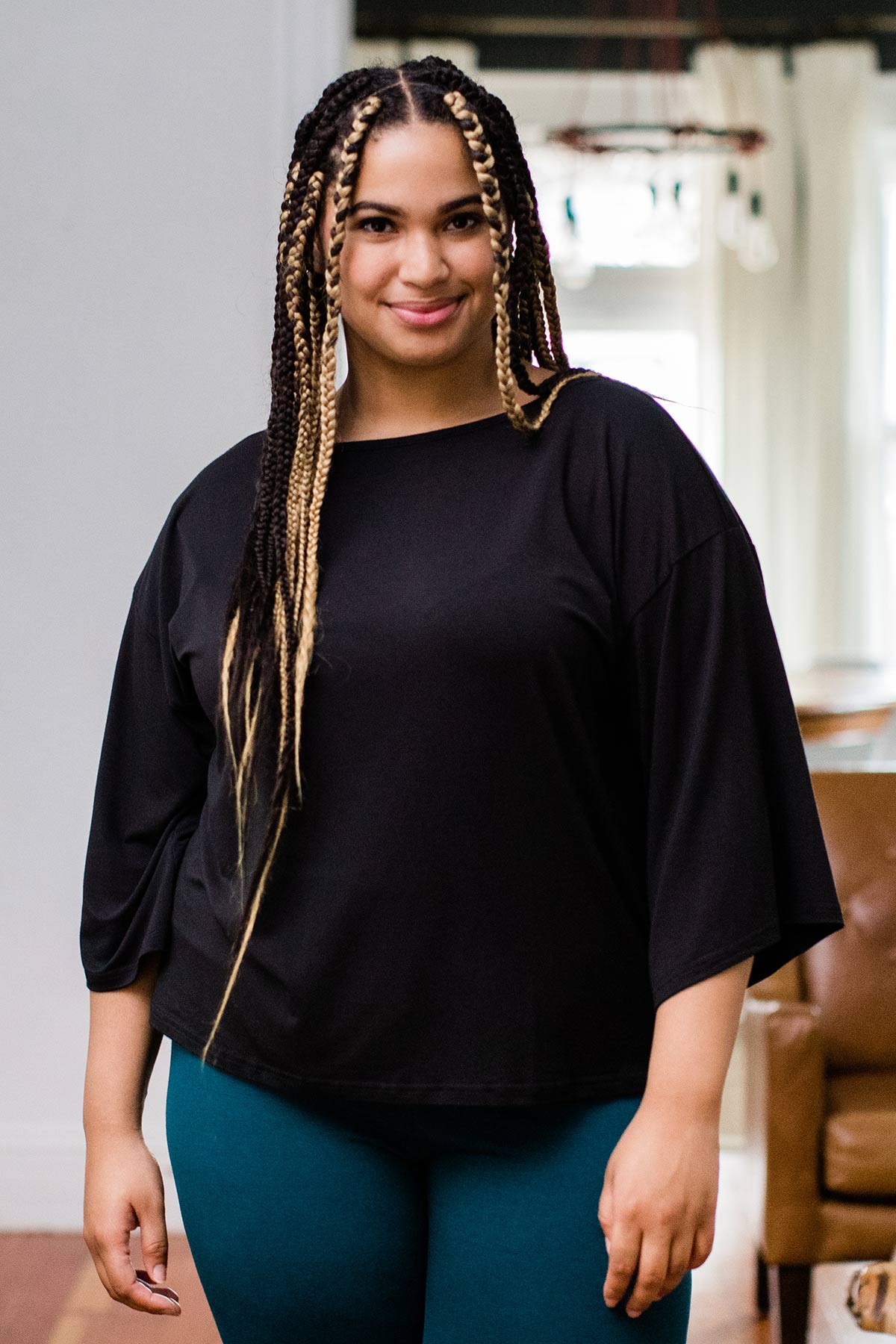 The classic look of the French Riviera comes to life in this roomy shirt, available in a variety of stripes. Work or play, experience the comfort of this soft and stretchy bamboo fabric. The Jaclyn Top's details include a kimono-inspired 3/4 sleeve and boatneck. Loosely fitted through the body. The hem sits at mid-hip.