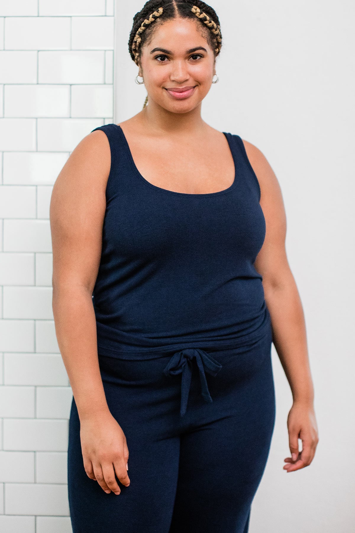 For the freedom of a tank top with the coziness of a sweater, look no further. The Claire Sweater Tank Top was designed with opulent lounging in mind. Sold as a separate, but designed to pair perfectly with the Peyton Sweater Lounge Pant trust us, feeling is believing. Scoop neck and back, mid-thigh hem.