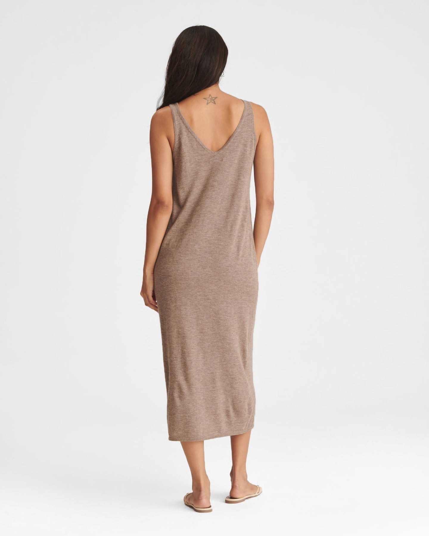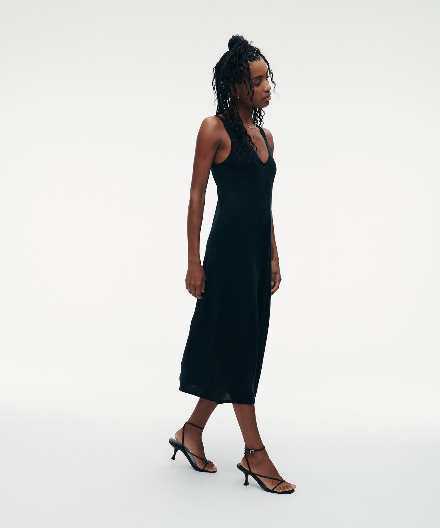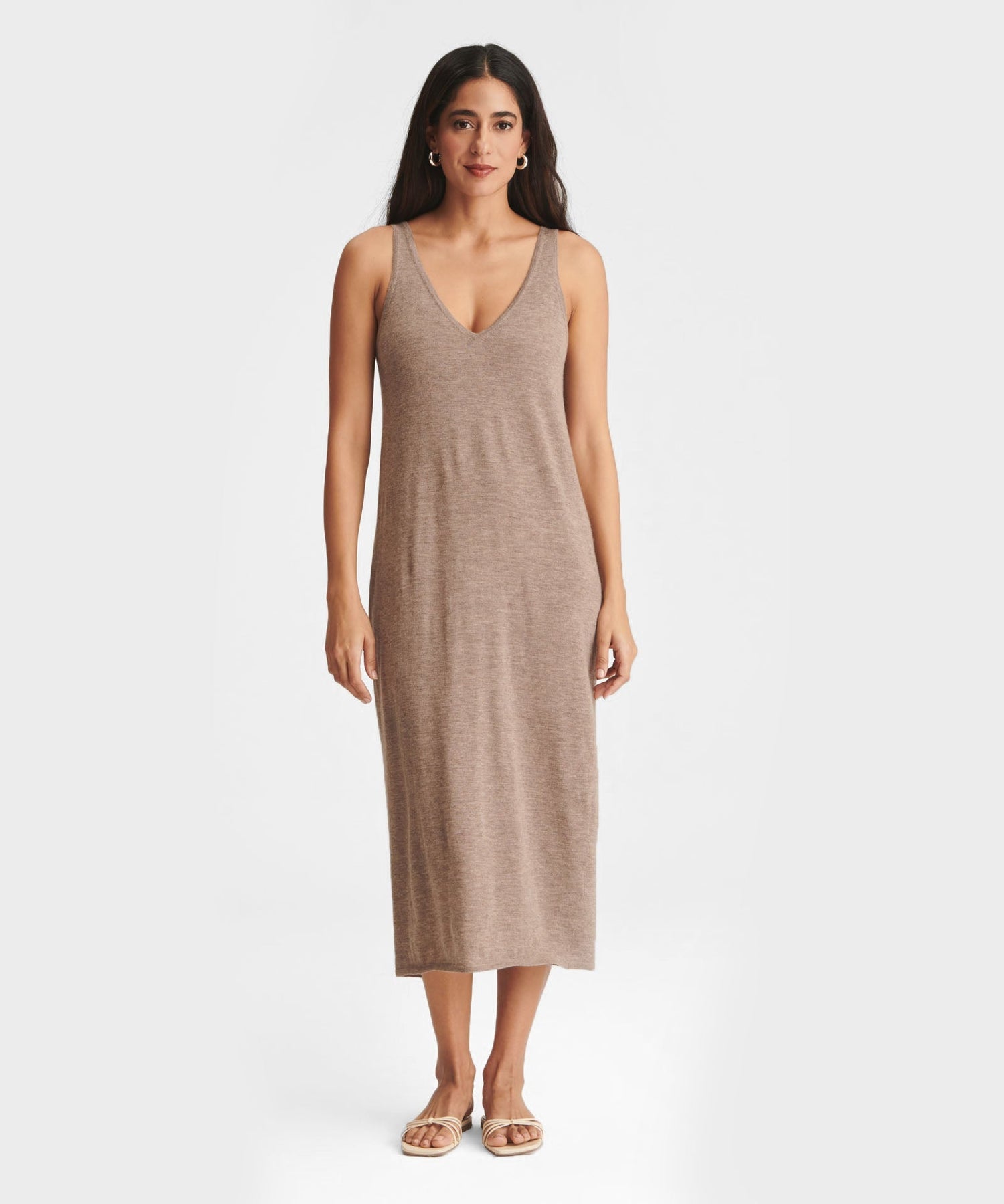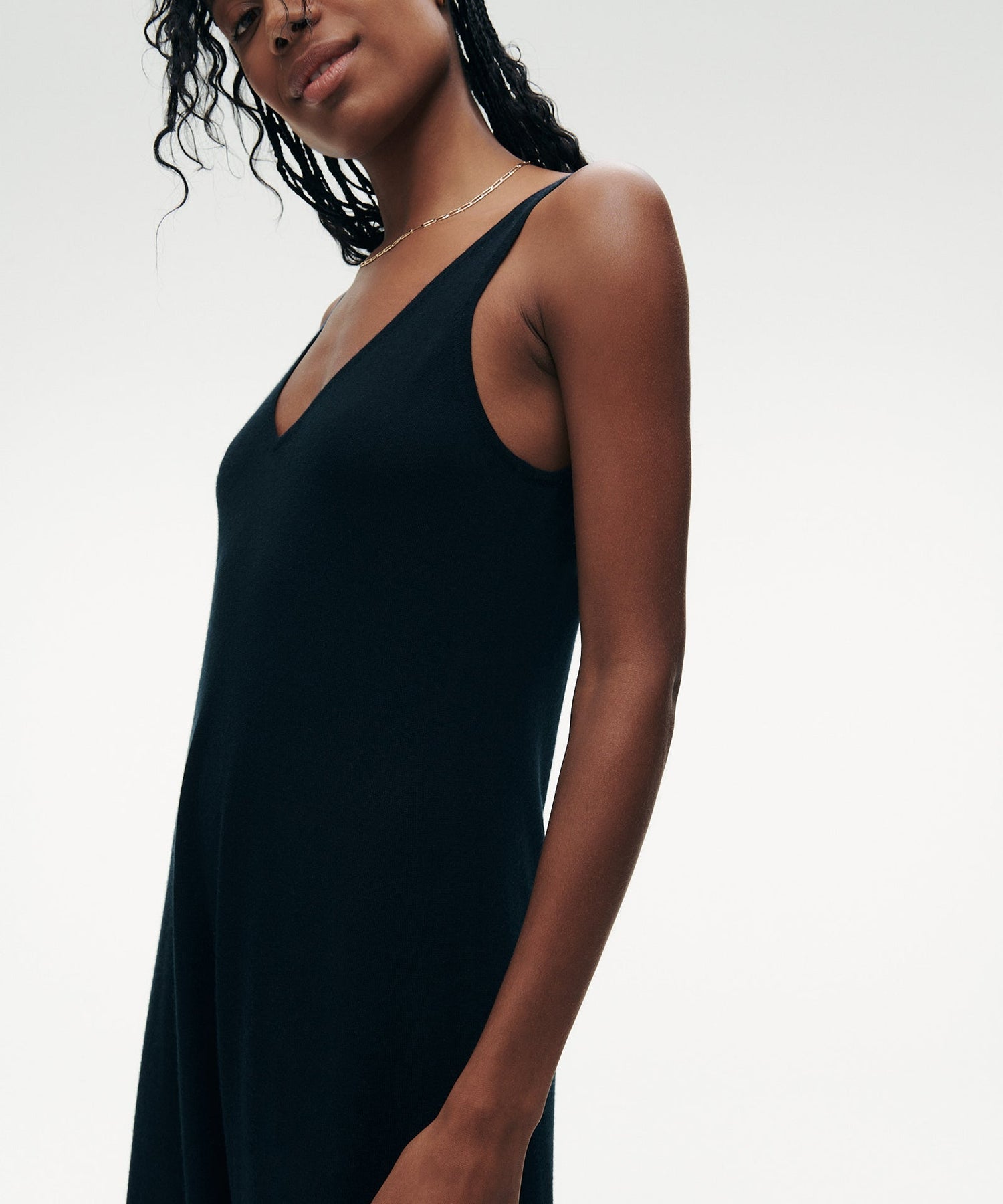 The Super Fine Cashmere Tank Dress is a luxuriously-lightweight midi dress with a classic fit. It features a deep v neckline, trimmed edges, and an effortlessly-chic design. Crafted from Super Fine Cashmere: Our premium, 16gg cashmere that’s knit on top-of-the-line machinery. It’s extra-fine and silky-soft.