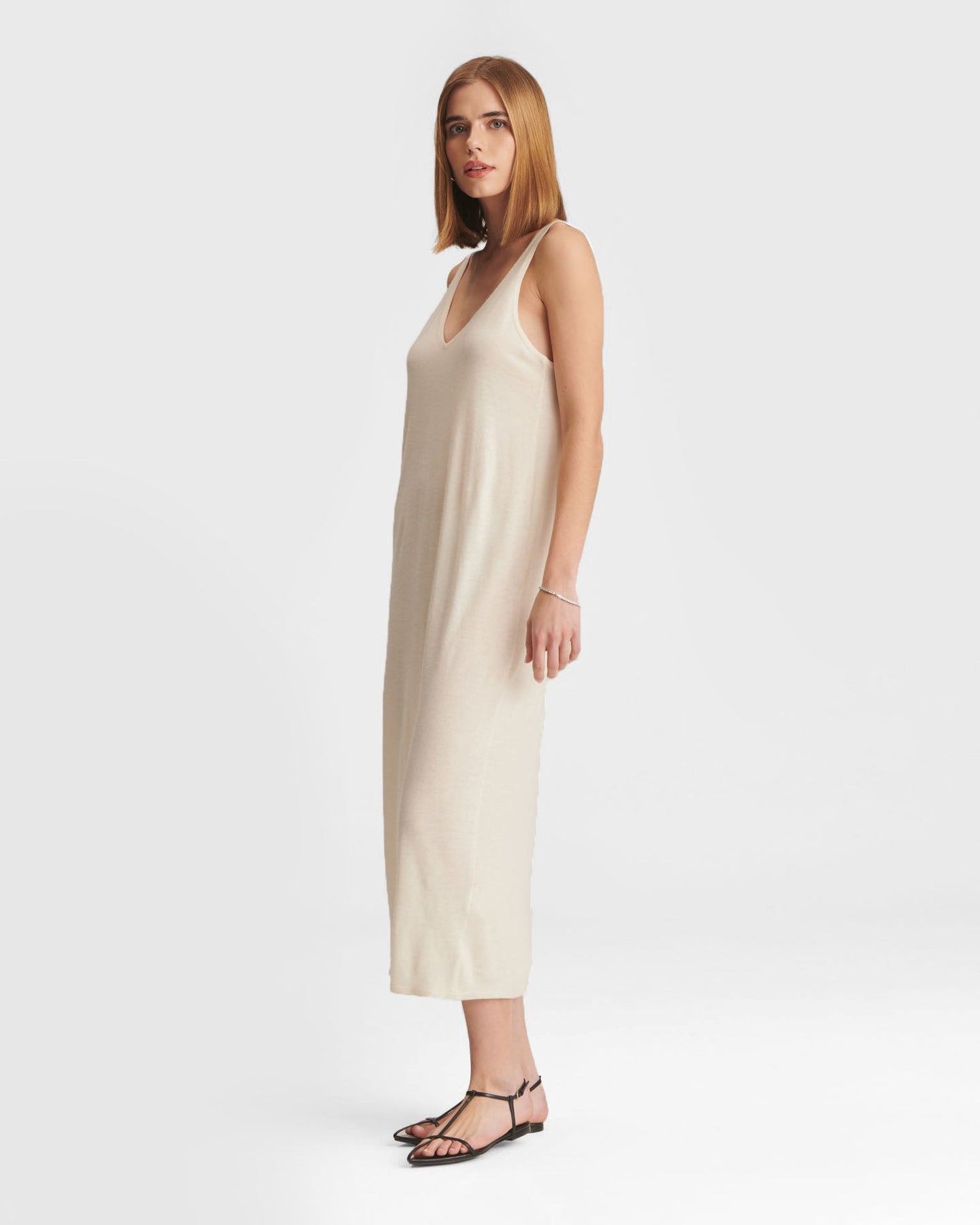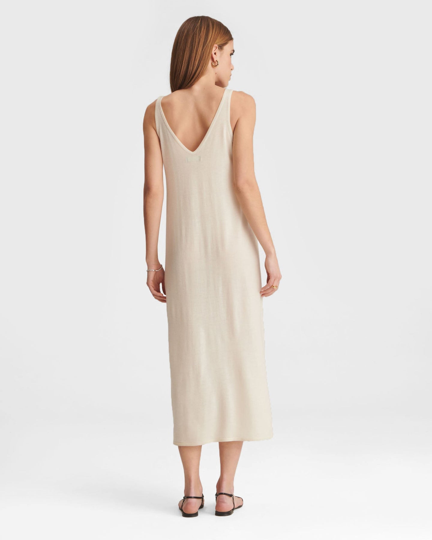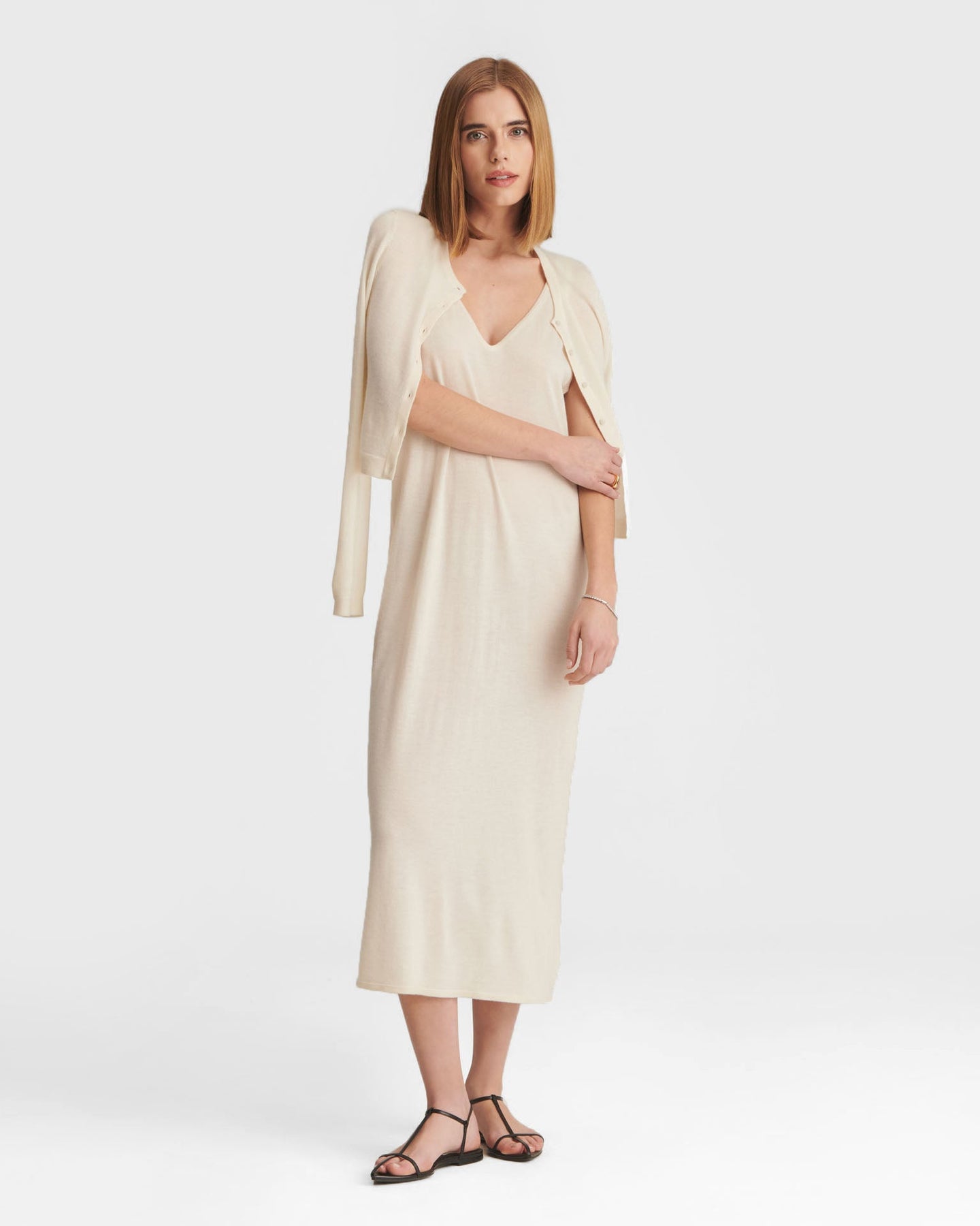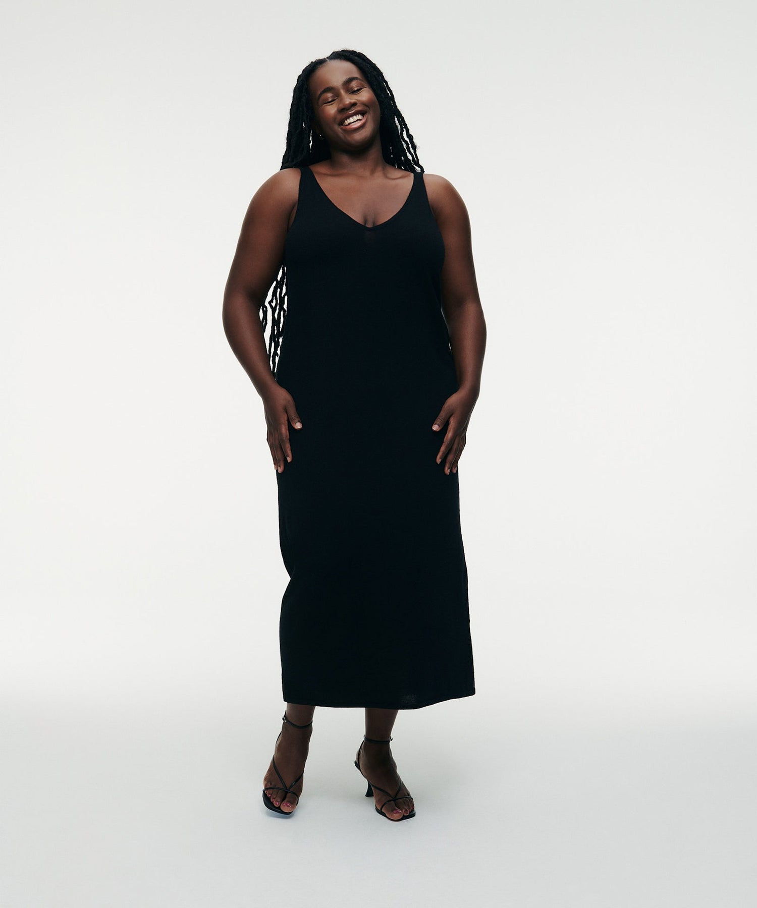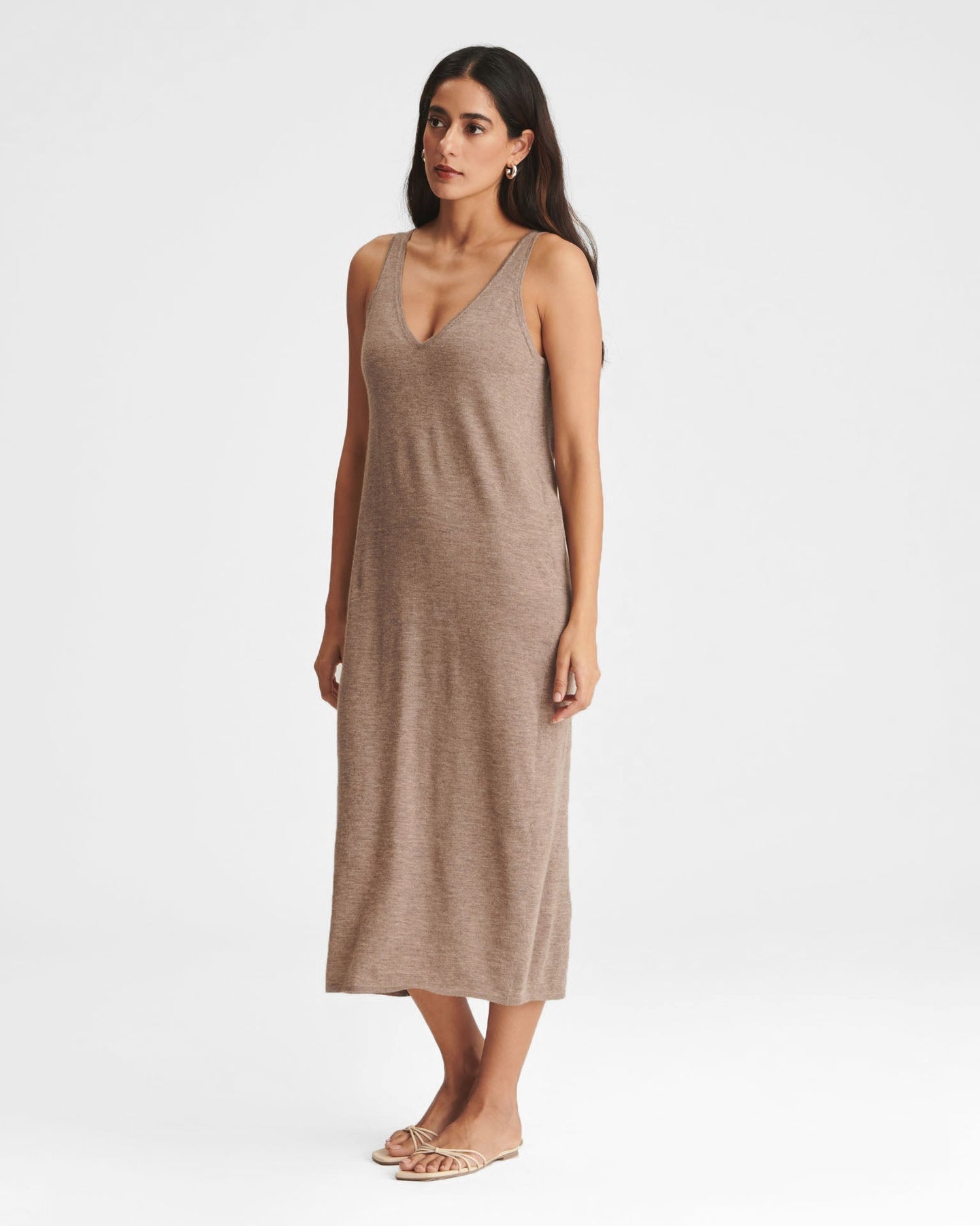The Super Fine Cashmere Tank Dress is a luxuriously-lightweight midi dress with a classic fit. It features a deep v neckline, trimmed edges, and an effortlessly-chic design. Crafted from Super Fine Cashmere: Our premium, 16gg cashmere that’s knit on top-of-the-line machinery. It’s extra-fine and silky-soft.
