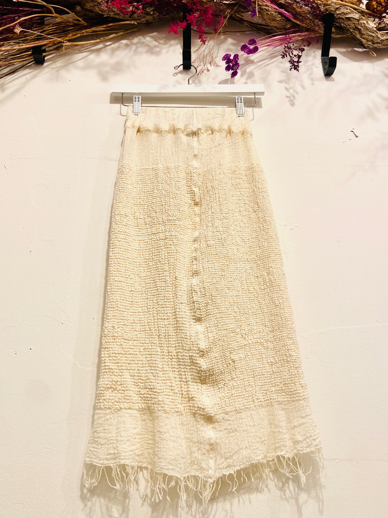 Aida is framed with a semi sheer textured cotton gauze band gracing the hemline.