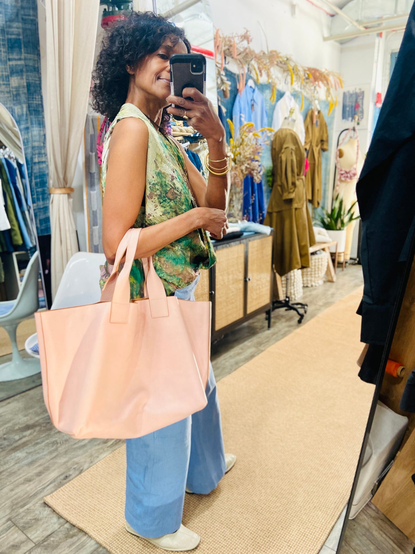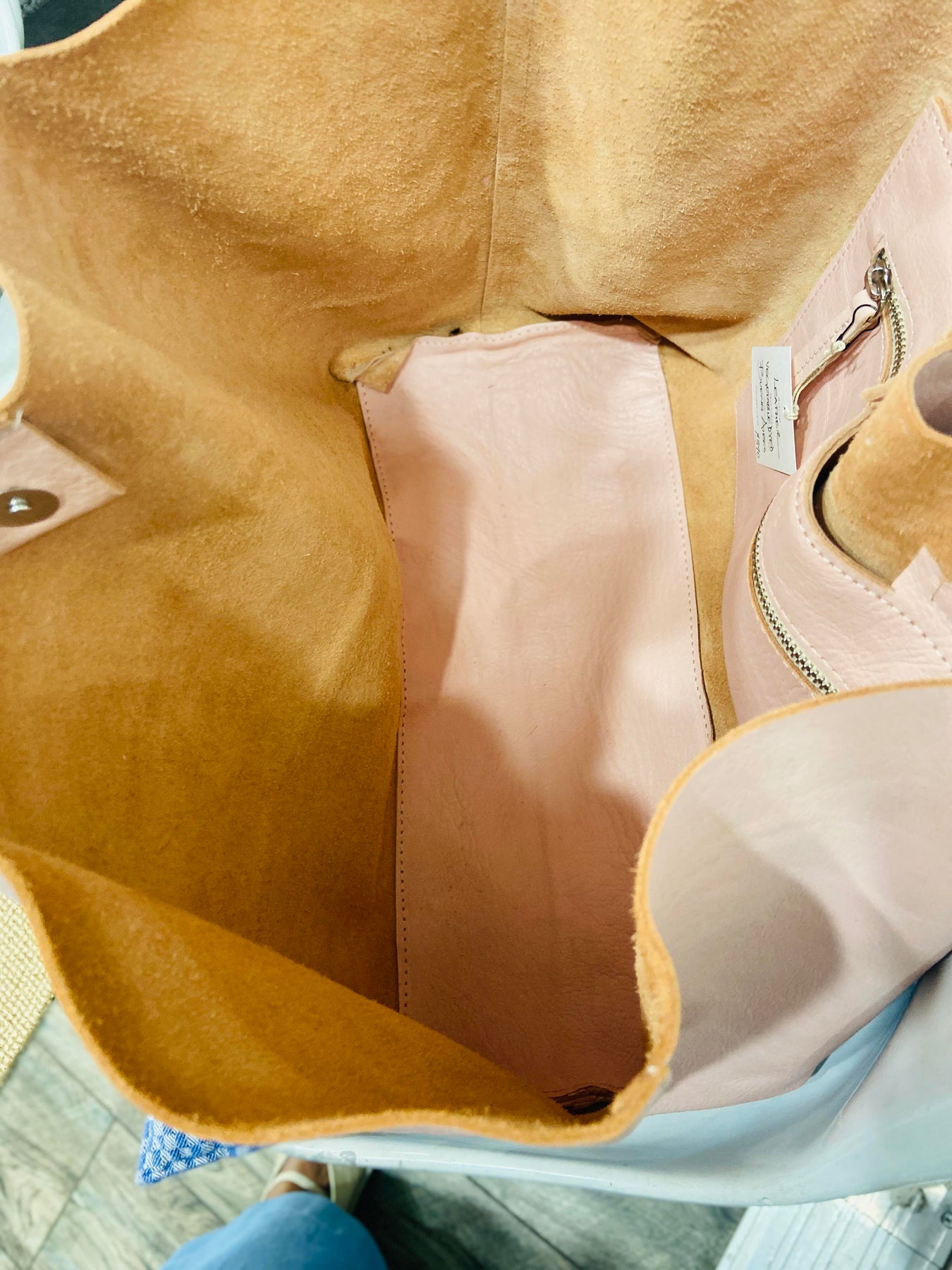 The Buenos Tote by Nuraxi, handcrafted in the supplest Argentinean leather and botanically hand dyed in a gorgeous and timeless soft pink tone. The interior holds a zipped pocket.