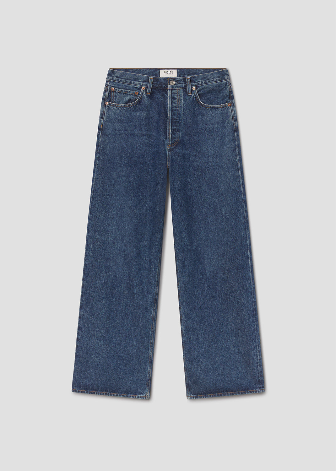 The Dame Jean features a flattering high rise and a wide leg with a clean, no-cuff finish. Crafted from rigid, non-stretch regenerative cotton denim with a soft hand, this dark vintage indigo wash is subtly marbled for a time-worn effect. Pair with a tucked-in tee or slim tank for an easy, elongated silhouette. Now available in a 29.5" inseam.