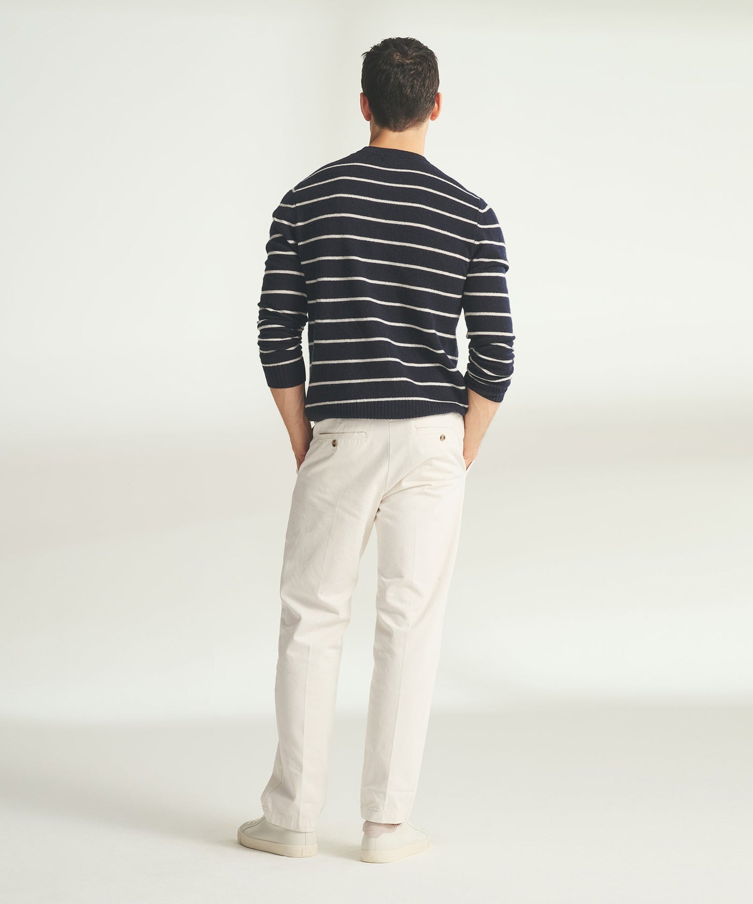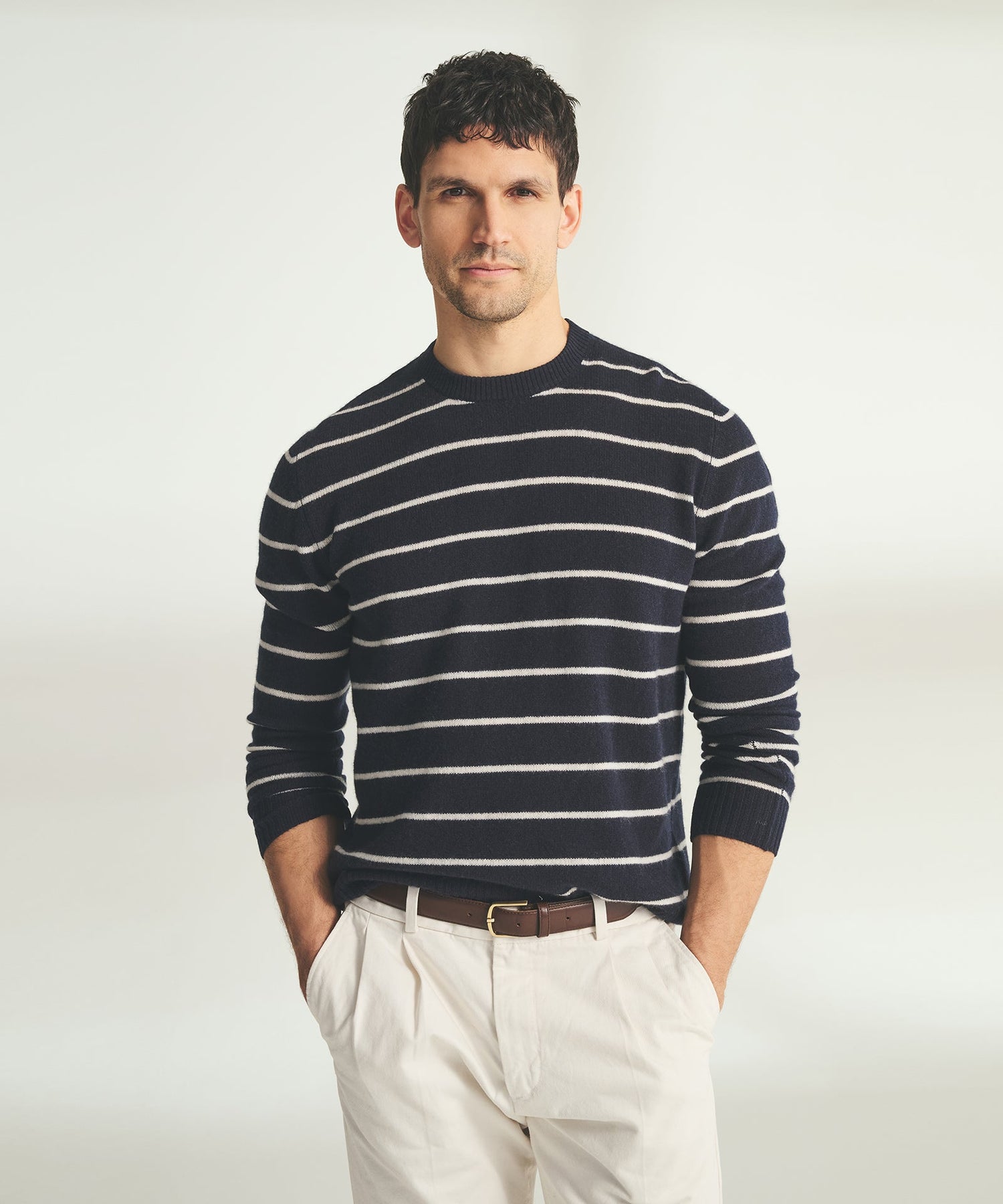 Seaside sophistication, perfected. Our Lightweight Cashmere Crewneck brings a classy take on nautical style with clean lines and our airy lightweight cashmere. The relaxed silhouette keeps things effortless, while the navy and white stripes work overtime in your wardrobe.