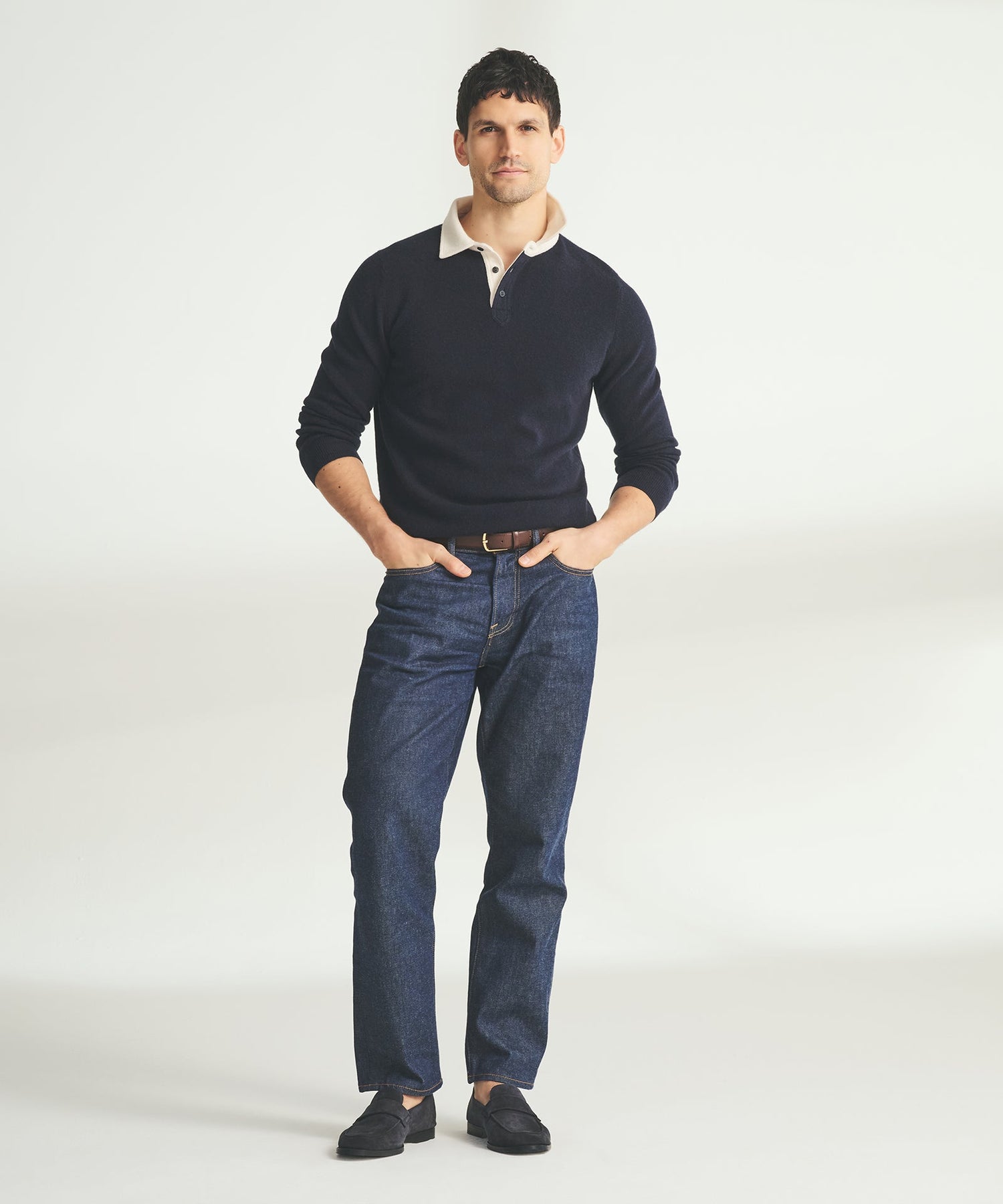 Meet the remix. Our Signature Cashmere Polo gets a fresh spin with a contrast collar and classic silhouette. Crafted from heavenly soft Mongolian cashmere, it's a balance of polished and effortless. Layer under a blazer when business calls, or keep it cool with denim for those "where'd you get that?" moments.