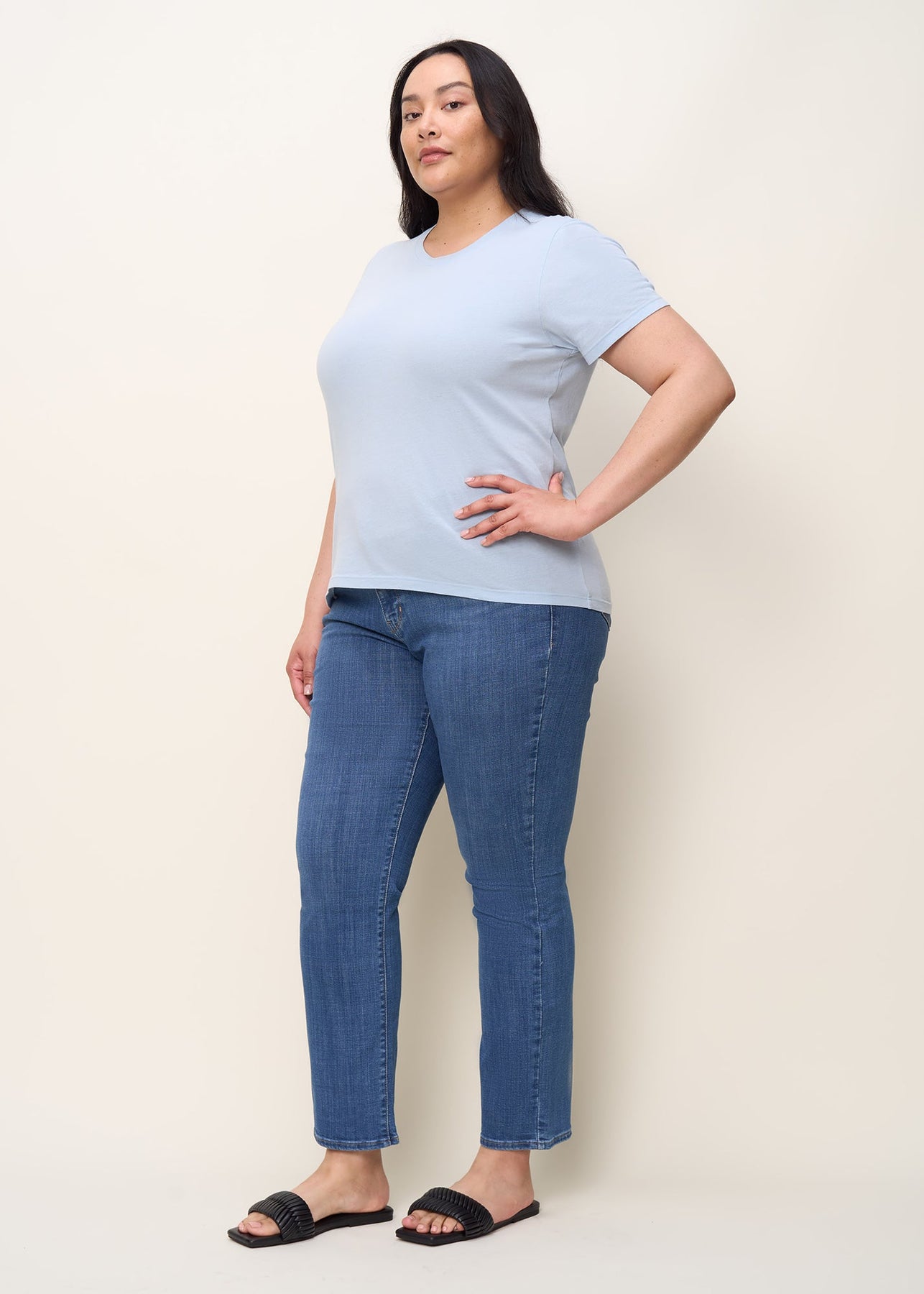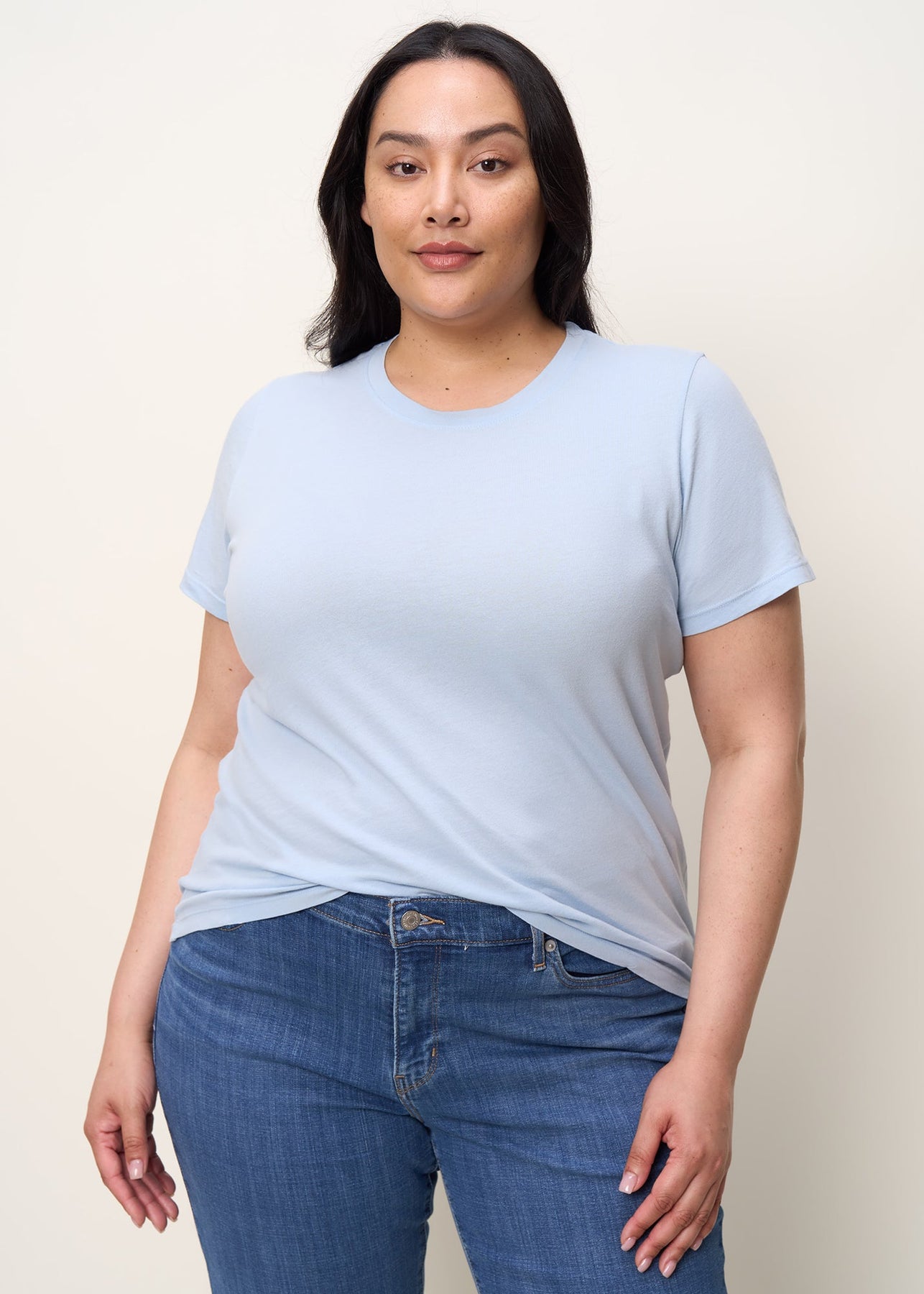 Simple luxury, zero fuss. Our women's crew neck tee is crafted from organic and recycled cotton jersey for softness, breathability, and planet-friendly wear. Designed with a relaxed fit and short sleeves, it's your go-to for effortless style on easygoing days. Ethically made in Los Angeles with eco-friendly dyes.