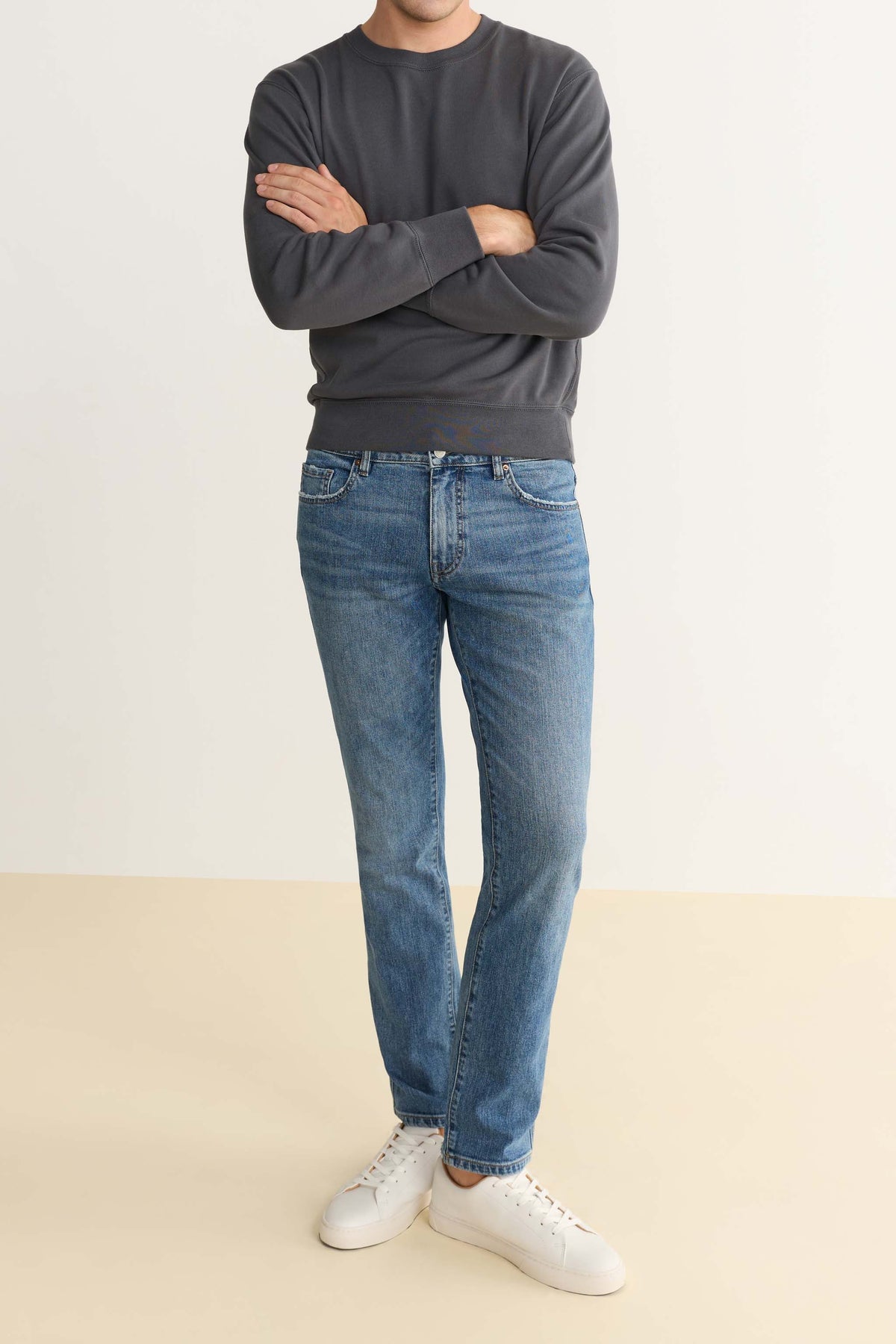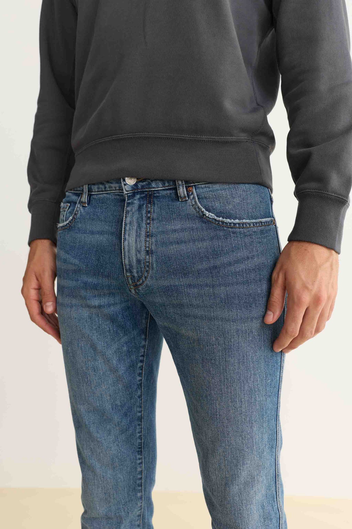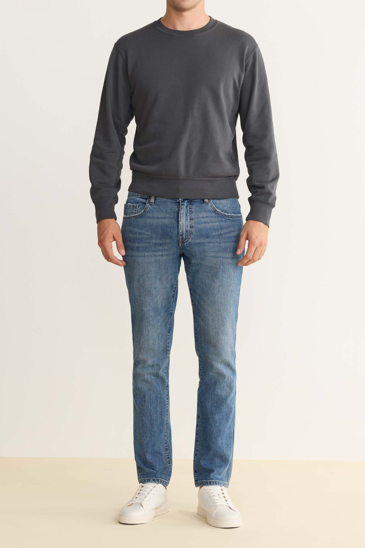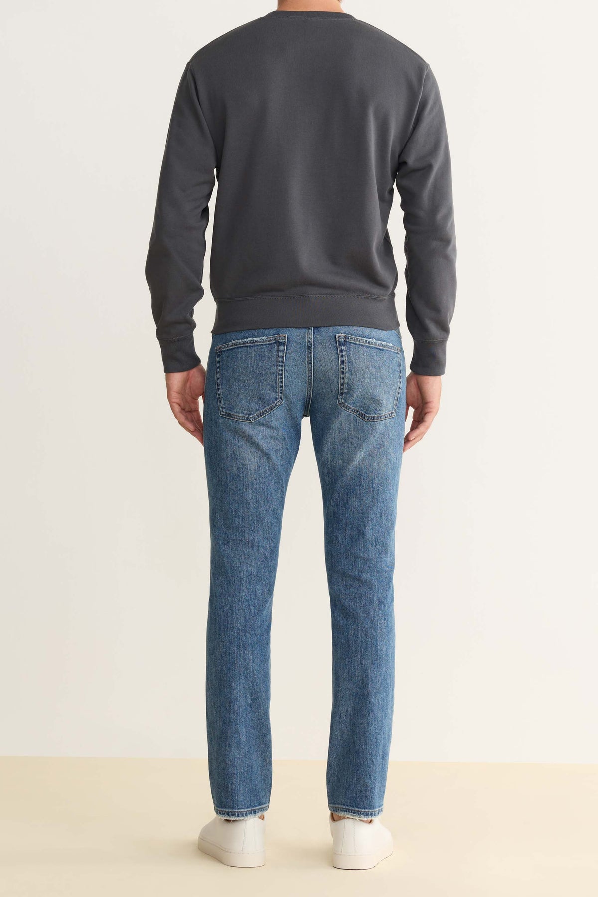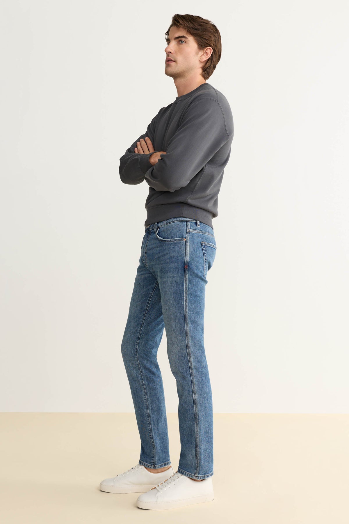 Our most popular slim-fit jeans are sharp but not skinny, a silhouette we first fell for in Amsterdam. Crafted from high-retention stretch fabric that’s engineered to prevent baggy knees and saggy waistbands, it’s a versatile, high-performance denim that’s extremely durable and easy to dress up or down. Francisco is a mid-indigo wash with authentic character throughout. It features a silver shank, copper rivets and a clean hem.